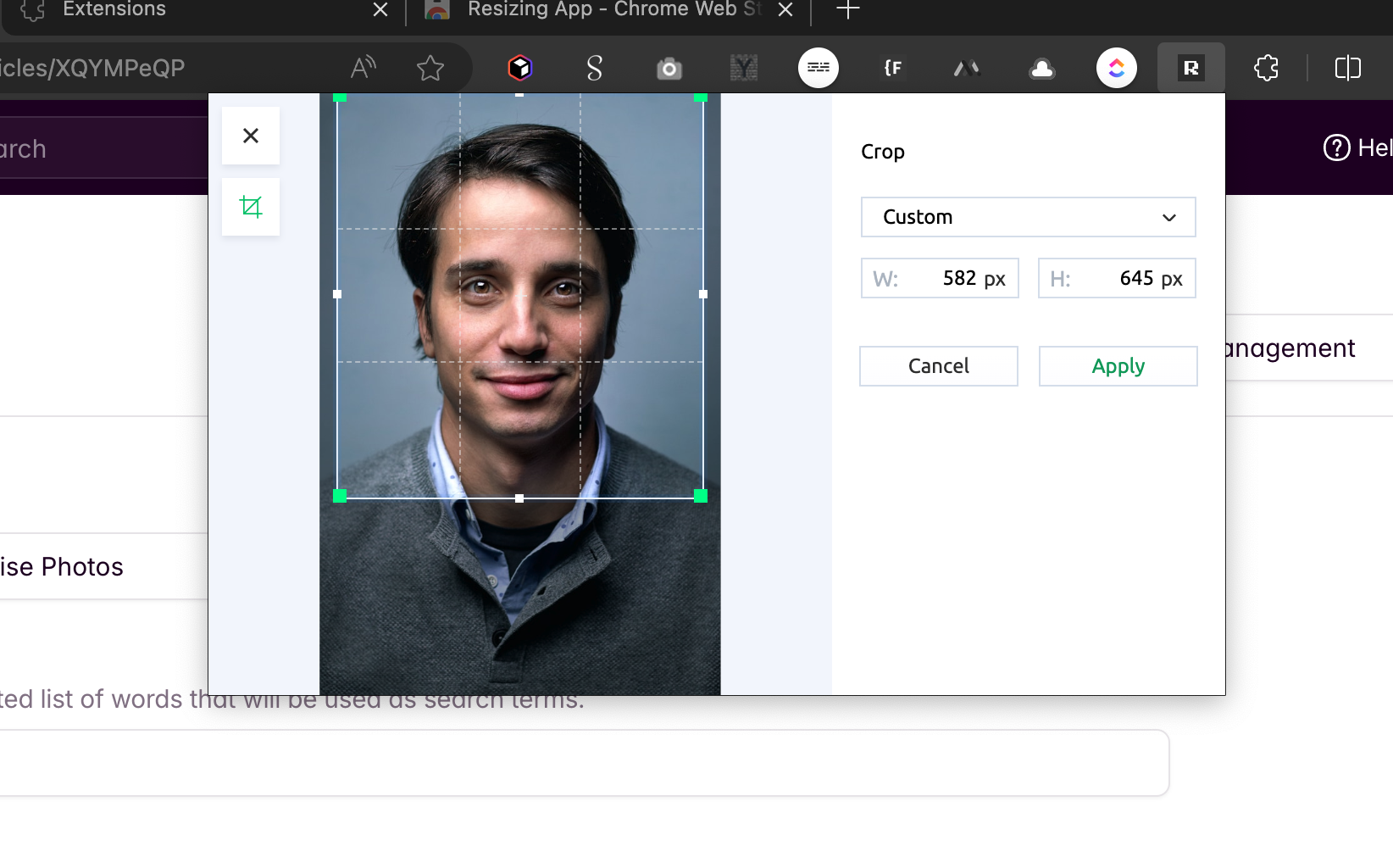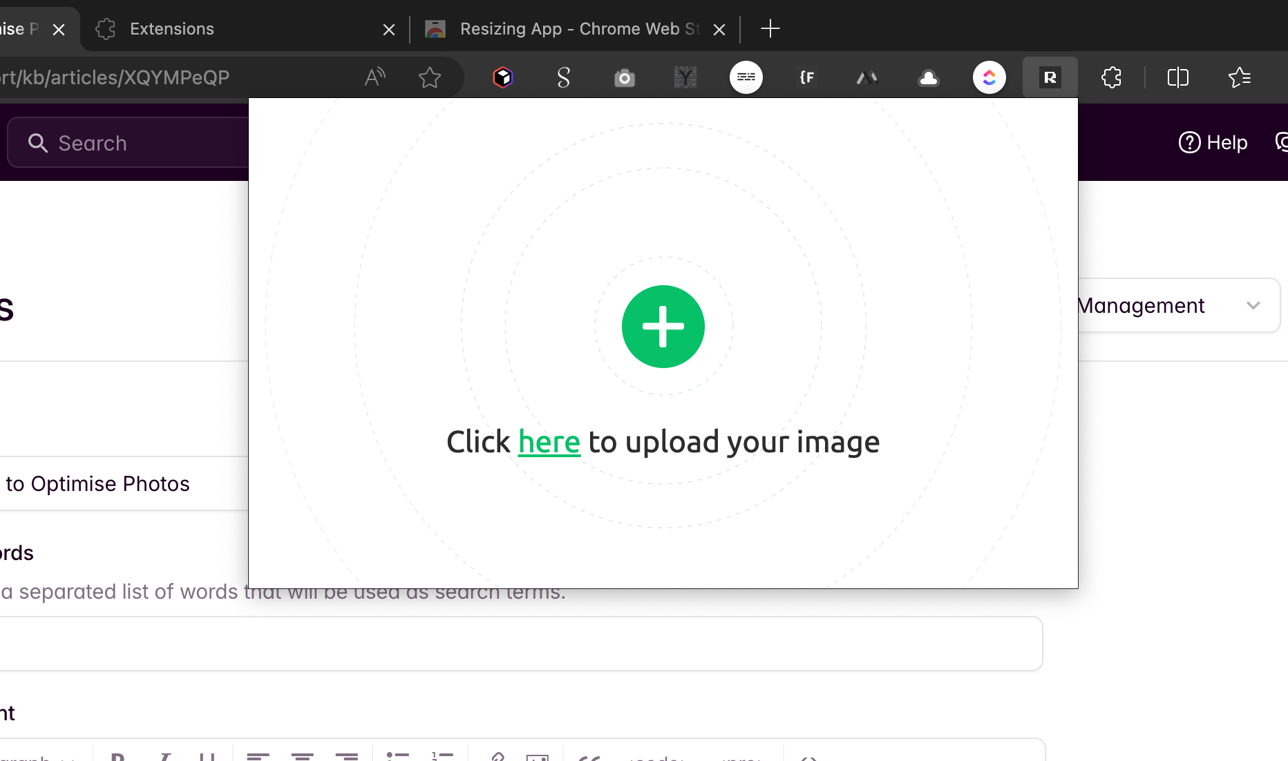 You can also choose to crop the image. Click the crop button below the close (x) button. Consider both desktop and mobile views as images which are legible on desktop can appear much harder to read once scaled down on smaller screens. Cropping is a good way of reducing the file size of an image and also ensuring the focal point of the image is in the center.
